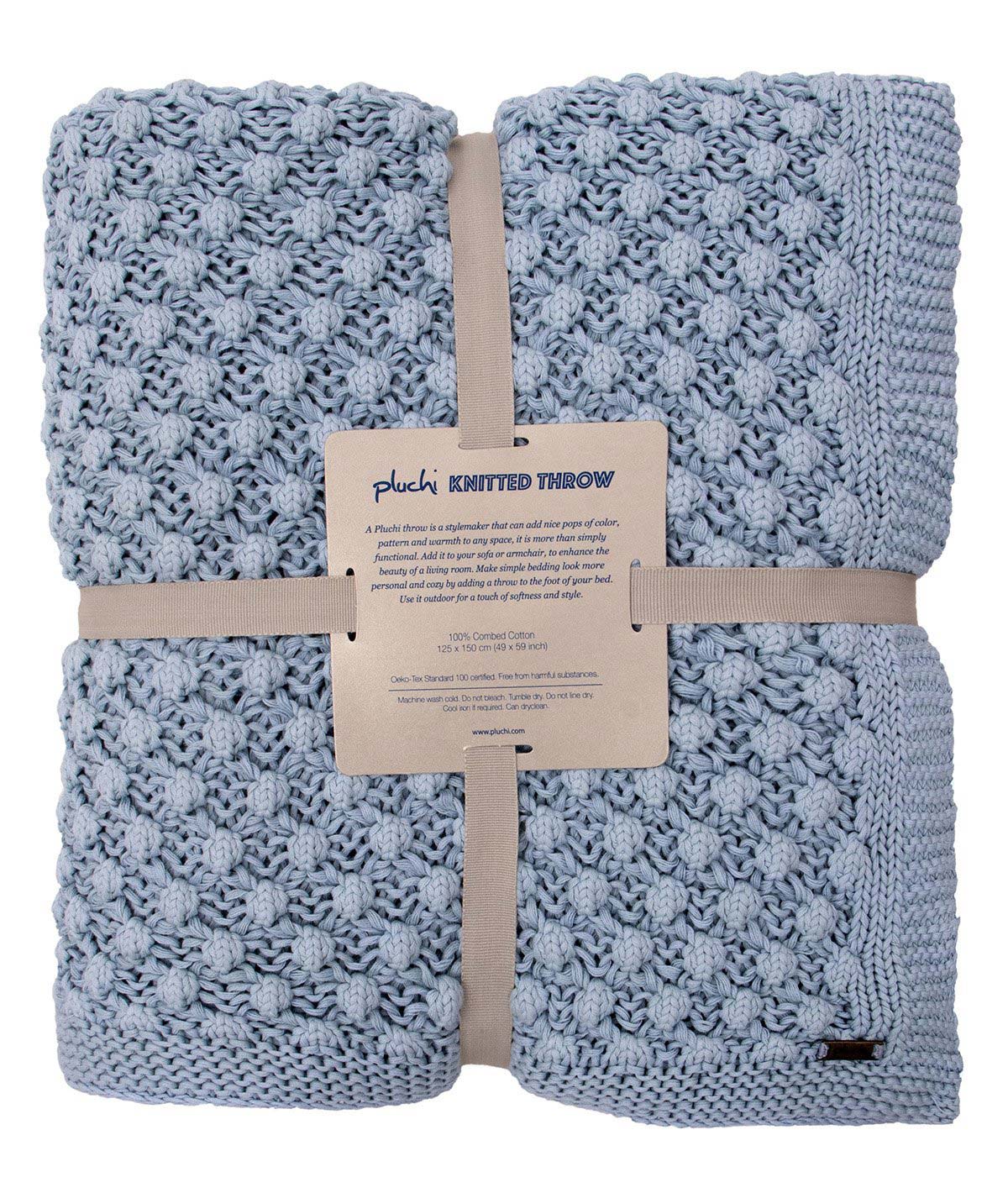 Periwinkle Popcorn Blue 100 Cotton Knitted All Season Ac Throw Blanke Pluchi Online